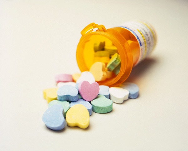 February 12, 2015 Love Pills Spilling from Prescription Bottle Love Pills Spilling from Prescription Bottle — Image by © Koopman/CORBIS